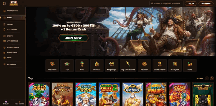 Uvítací bonus: Nováčci se mohou těšit na 100% bonus až do €500 + 200 zatočení zdarma + 1 „Bonus Crab“ kredit.